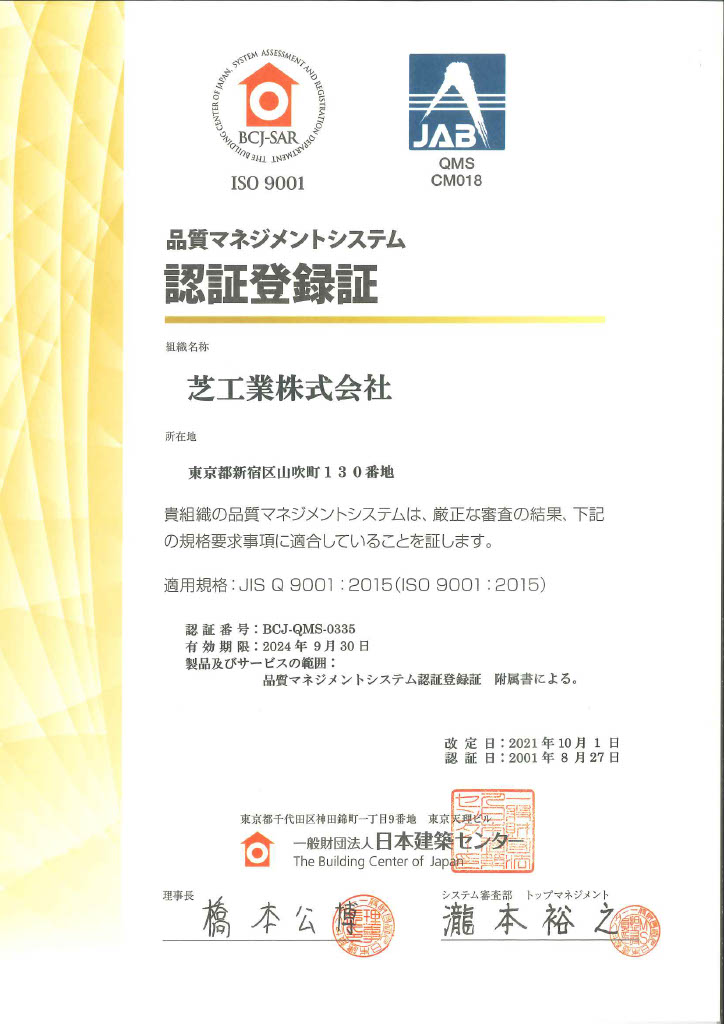 | 適用規格 | JIS Q 9001:2015(ISO 9001:2015) |