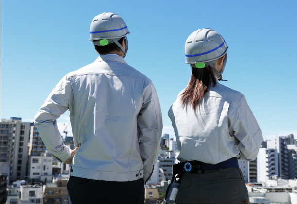 地図に残る仕事・・昔から言われますが、我々建設業の醍醐味は何といっても自分がやった仕事が目に見える形で長年残っていくことです。また、我々が生業としている建築設備業は、ひとりでできる仕事ではなく、いろいろな職種の方々とチームとなって作り上げていくものです。特に、工事部の大半を占める施工管理職は、現場監督として、お客様と打ち合わせをし、現場の作業員を束ねつつ、工事を完成へと導くとても重要で大変やりがいのある仕事です。